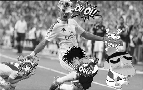 Ni dio tiempo a posarnos cuando el Pepe ese inició él solito un pogo salvaje con los jugadores del Rayo. Empezó el menú degustación con unos entremeses de galletas obleas, seguido de chistorrazos con cabezazos de ajo y bocaditos de cabra. De primero, aplicó con generosidad palabras soeces a las madres de los jugadores rayistas y aderezó sus pantorillas con sabor aluminio de taco de bota. Una persona normal ante semejante menú ya se hubiera chiorupeado, pero Pepe era cocinero, camarero y barman. Todo en uno. Cocinada, servía y cobraba sin problema. Por lo que se dispuso a servir de segundo un jugoso codillo luso-ibérico al entrecot rayista en salsa de escupitajo y barrido al suelo a las finas hierbas. Era un menú consistente y gratuito. Vamos, el sueño de cualquier sibarita sadomasoquista. Sería desconsiderado por su parte dejar al personal sin postre. Por tanto, remató el convite con unos piñonates caseros y unos huevos escarchados...