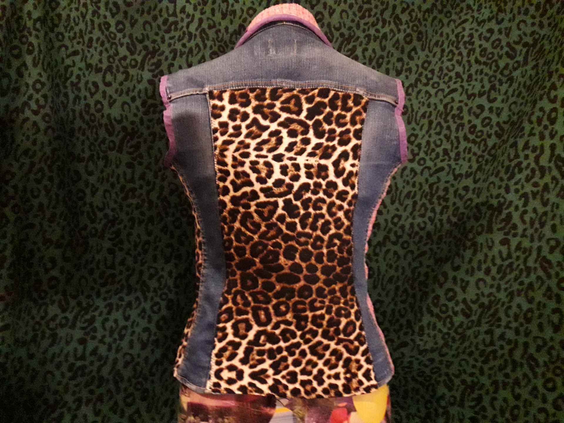 Chaleco vaquero para chica, talla M, tejido elástico. Con adornos de red.